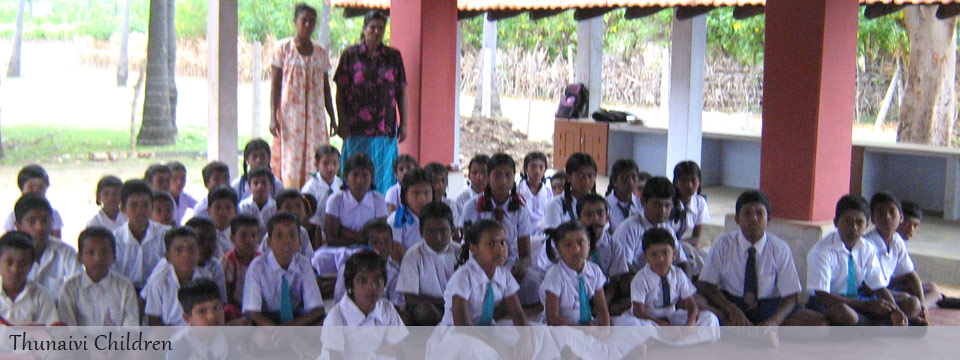 Development of the Thunaivi Village in Northern Sri Lanka primarily through Educational Activities– by becoming part of the Thunaivi Community which considered itself to be a disenfranchised part of Northern Sri Lanka. Thunaivi is a small village within the District of Vattukottai in Northern Sri Lanka – made up largely of descendants of those by tradition were toddy-tappers. Today, many young ones of Thunaivi have put themselves through formal education and are seeking higher standards of living.